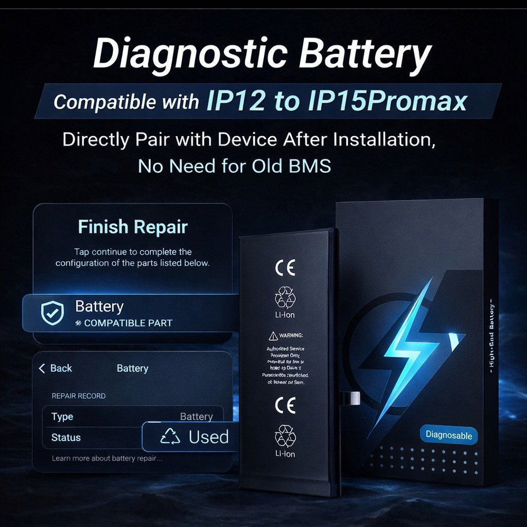This product is a black battery replacement specifically designed for Apple iPhone 12, 13, 14, 15, Pro, Max, Mini, and Plus models. Made in China, this unit is compatible with various Apple iPhone models and offers a convenient solution for replacing a worn-out or damaged battery. With a straightforward installation process, this battery replacement helps extend the lifespan of your device and ensures seamless functionality. Perfect for those in need of a reliable and high-quality power source for their Apple iPhone.