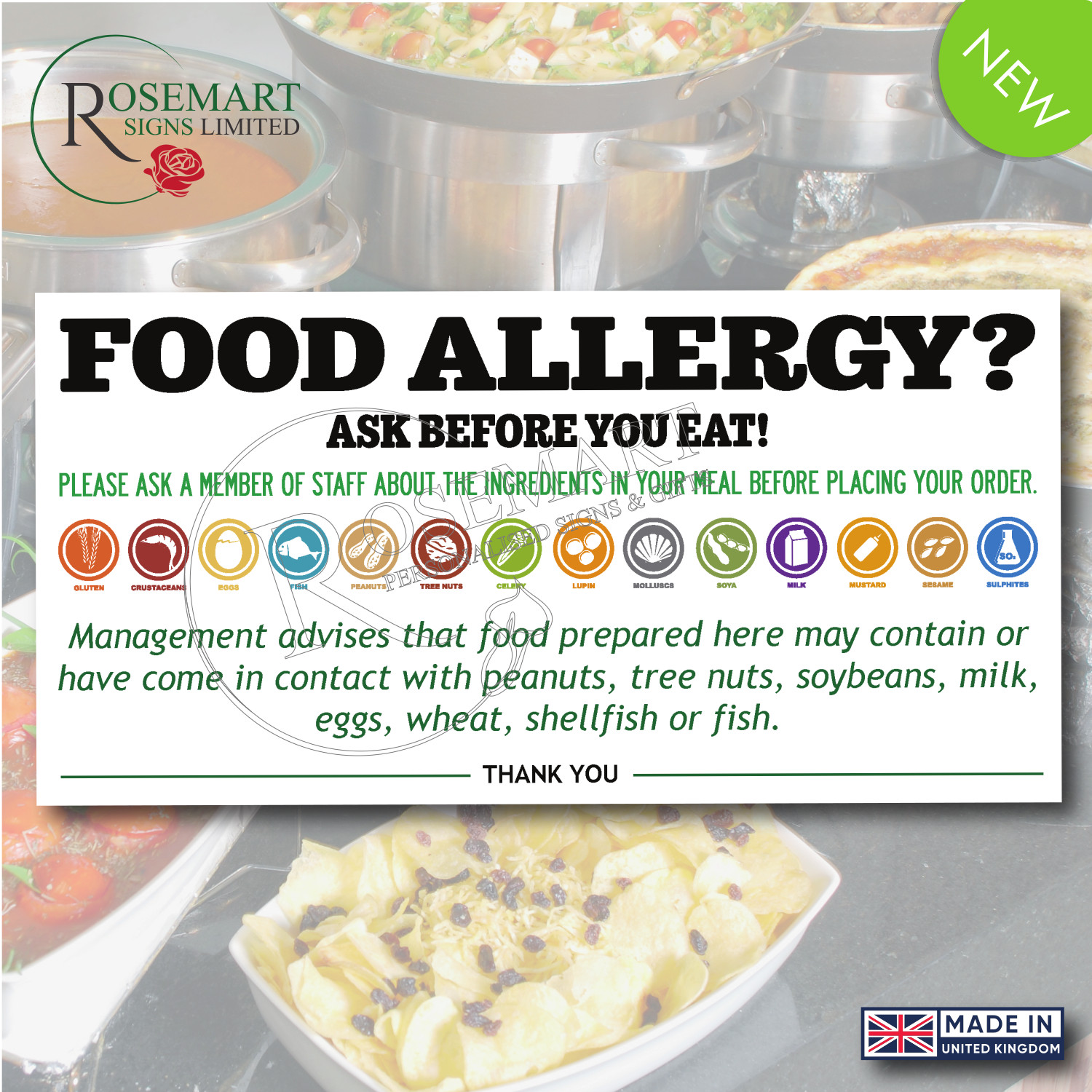 FOOD HYGIENE SAFETY ALLERGY ALLERGEN SIGN POSTER RESTAURANTS CAFE PUBS