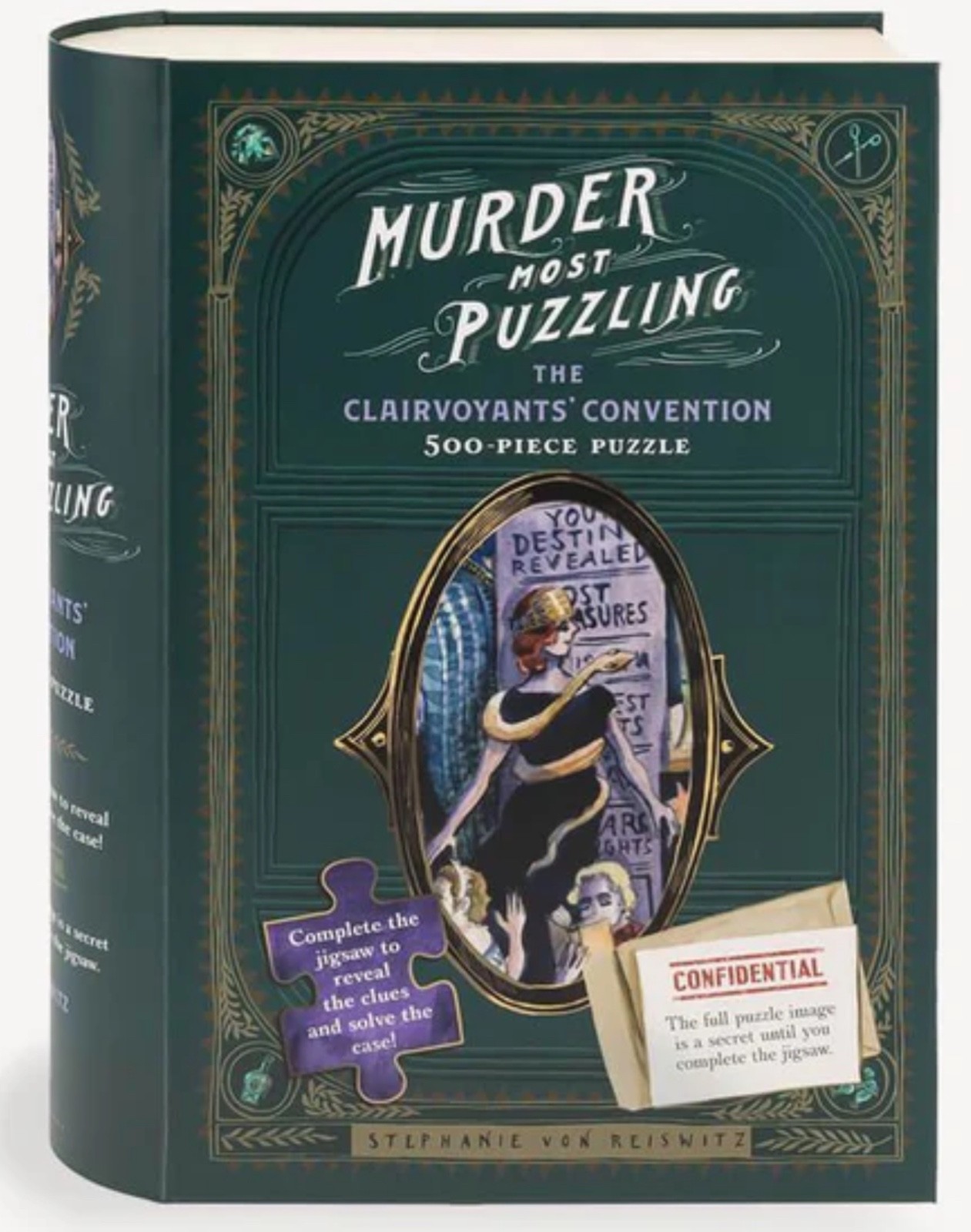 MURDER MOST PUZZLING. Complete the jigsaw puzzle to reveal the clues and solve the murder mystery. • DISTINCTIVE TWIST ON THE JIGSAW: In this mystery puzzle, the full puzzle image is a secret until you complete the jigsaw, because it contains the crucial clues you need to unravel the mystery.