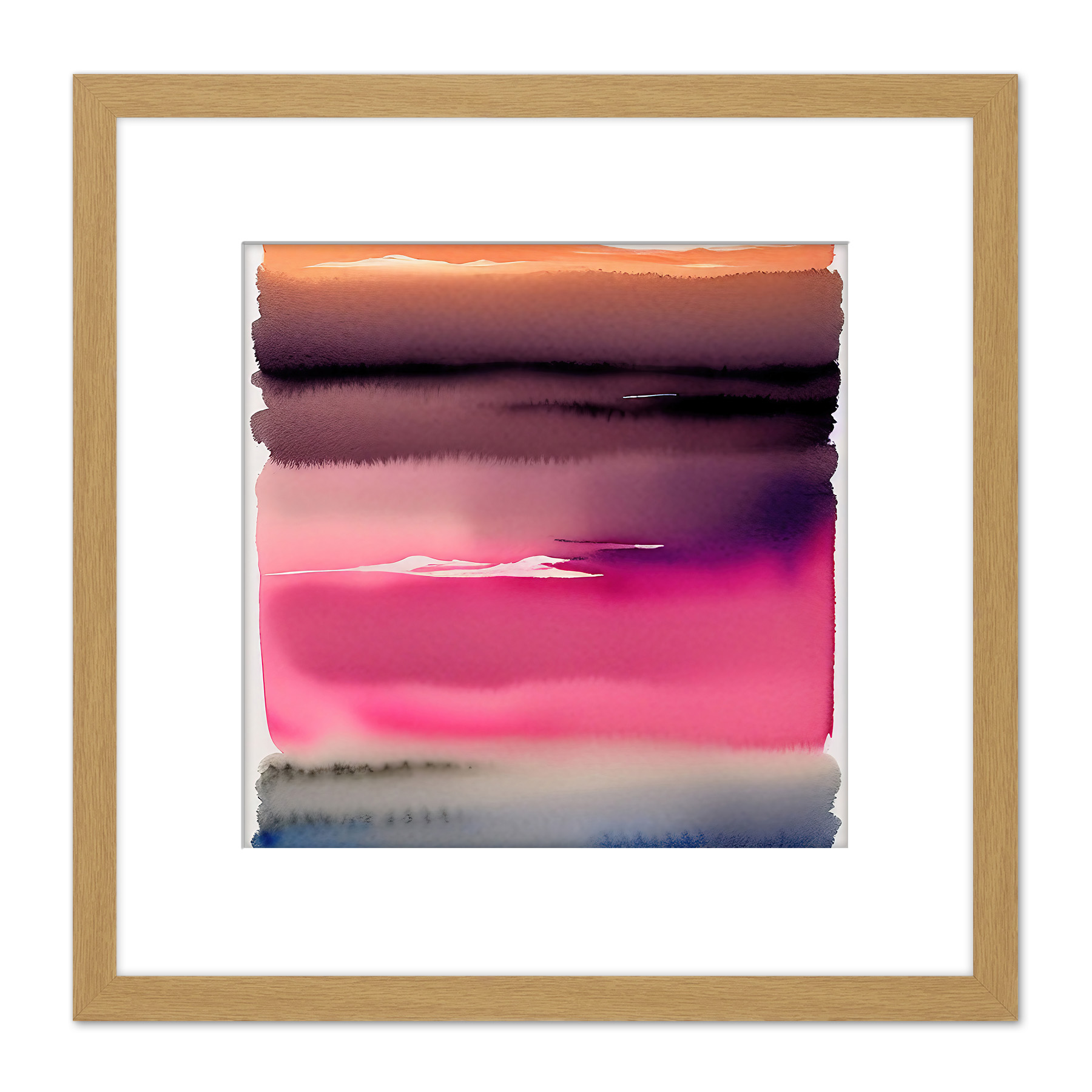 Sunset Lake Abstract Watercolour Soft Square Framed Wall Art Print 8X8 In