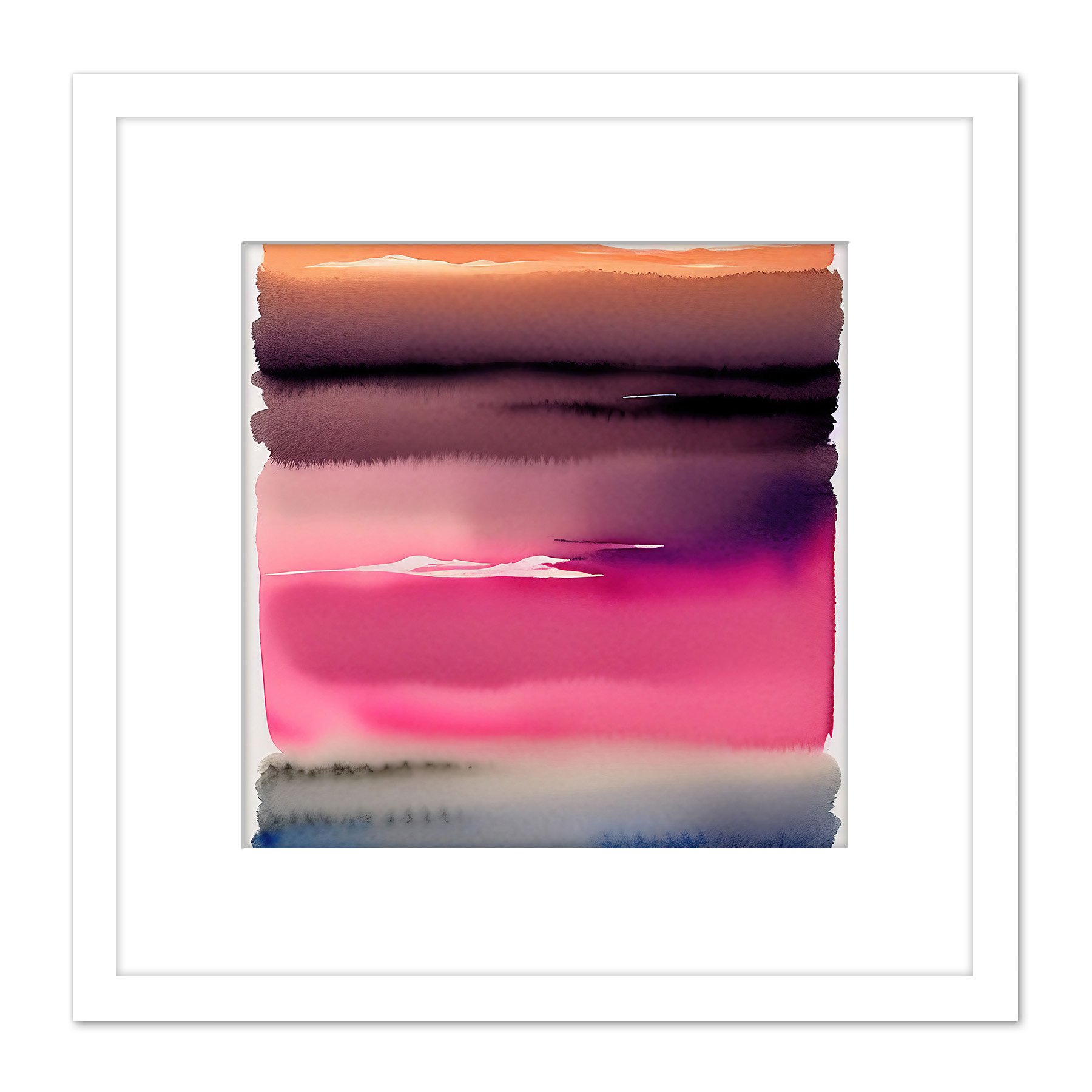Sunset Lake Abstract Watercolour Soft Square Framed Wall Art Print 8X8 In