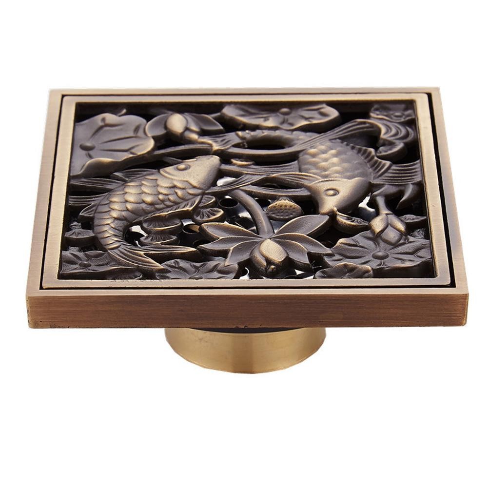 Efficient Drainage: Featuring a large drainage area with a hollow panel design, this drain allows for water flow, effectively avoid water accumulation and overflow. 1 Floor Drain. Material:Copper. Color:As shown in the picture.