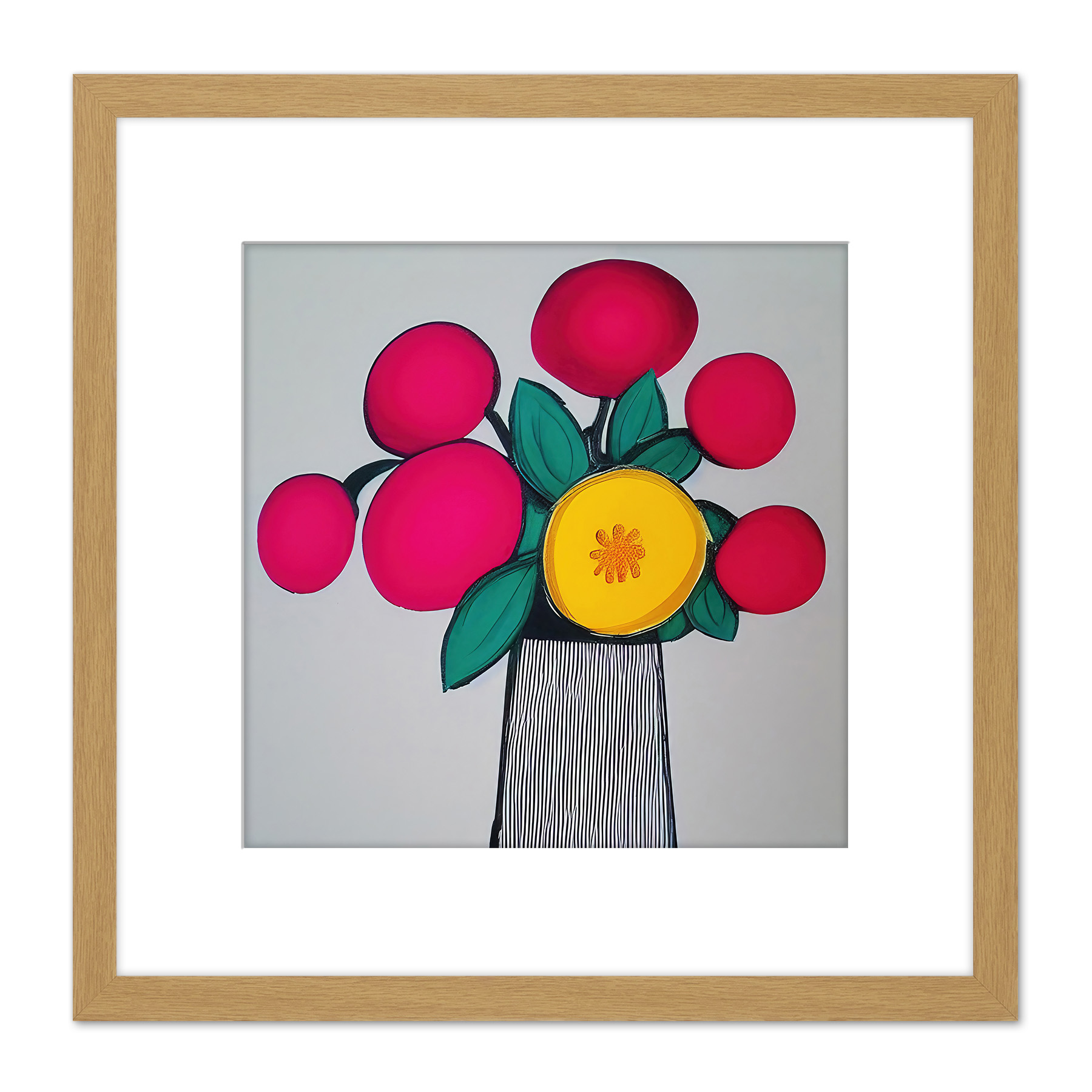 Modern Abstract Ruby Flowers Vase Boho Square Framed Wall Art Print 8X8 In
