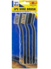 Removes rust, scale, paint and slag. Nylon bristles for lighter tasks, plated wire for heavier duty and stainless steel for corrosion resistance. 3 different brush heads on plastic handles. The 3 types are Nylon, Brass and Wire which give a variety of texture and stiffness.