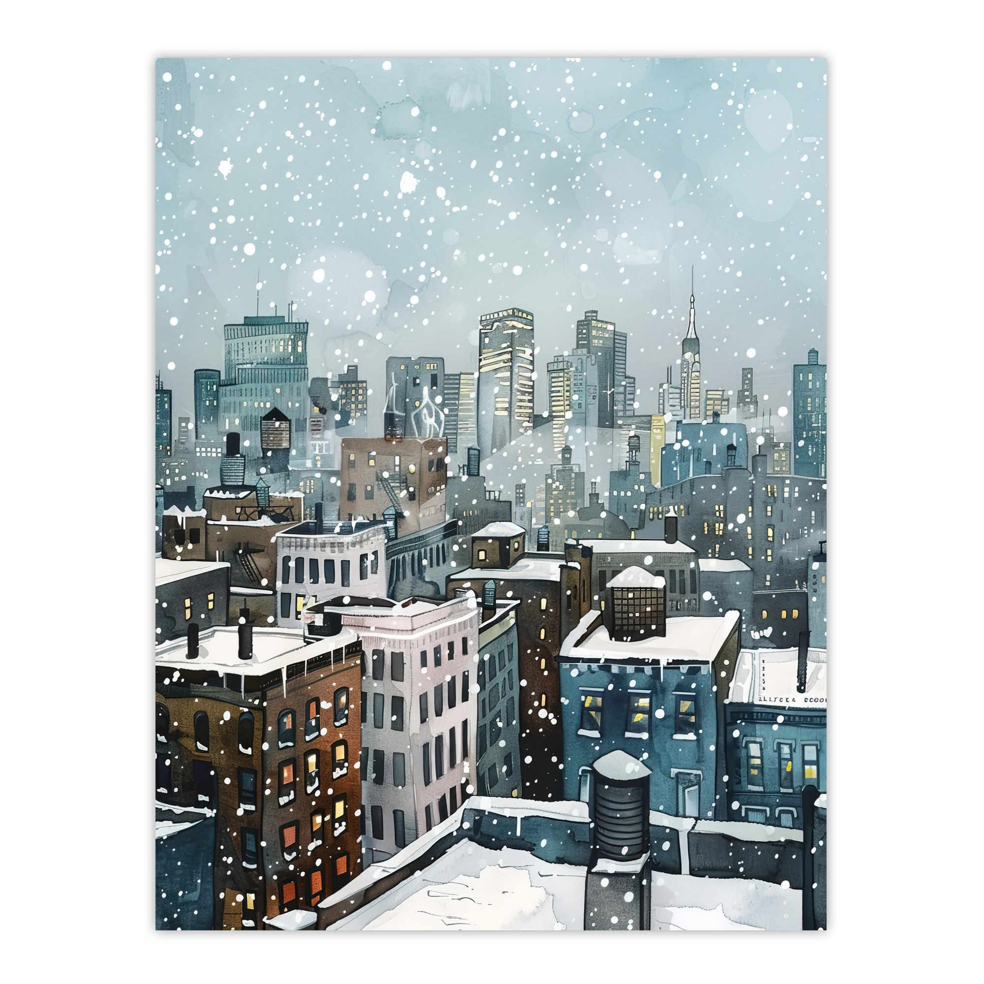 New York City Rooftops Winter Snow Cityscape Wall Art Poster Print