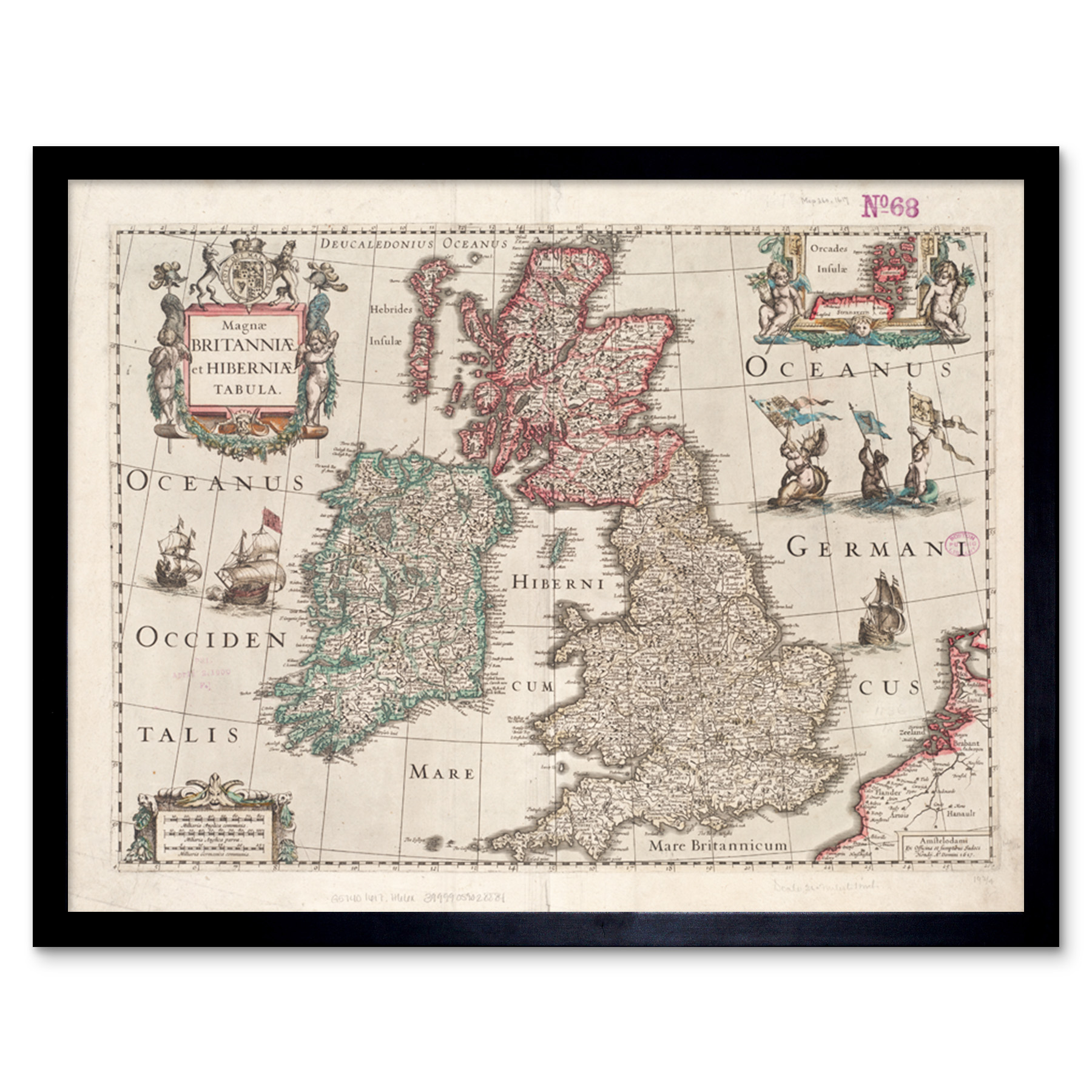 Hondius 1617 Map Great Britain Ireland Latin Language Wall Art Print Framed