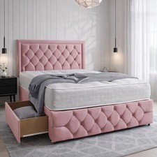 Experience luxurious sleep with this Deluxe Divan Bed Set. It also has hypoallergenic properties. The mattress is compatible with various sizes. Buy this original and heavy-duty bed set with a Chesterfield winged headboard and enjoy a good night's sleep.