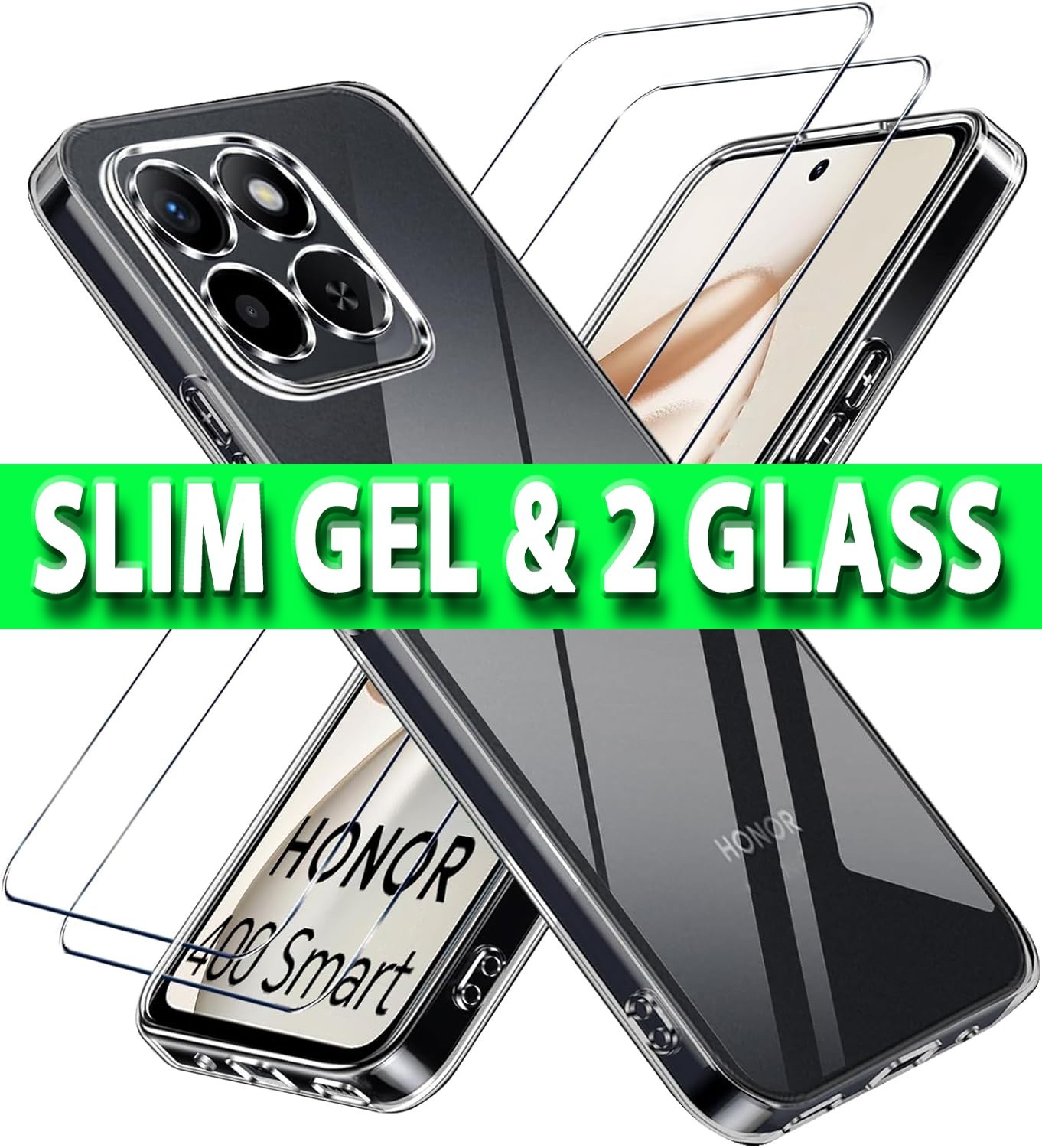 The SBOX Case For Honor 400 Smart 5G is a clear silicone gel phone cover with a screen protector, designed specifically for the Honor 400 model. The kit includes a clear gel case and a glass screen protector, providing comprehensive protection for your device.