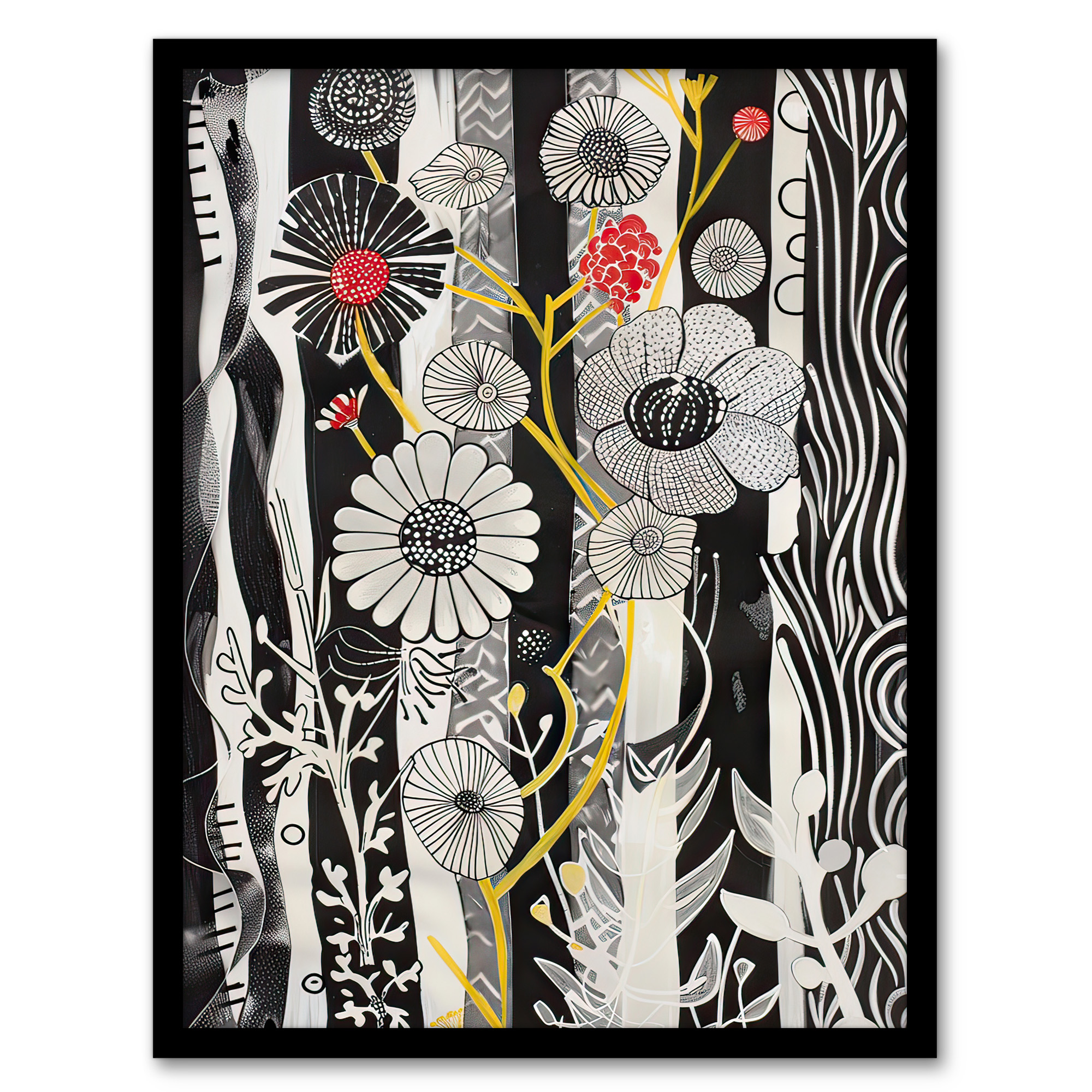 Black and White Stripes Abstract Wildflower Garden Wall Art Poster Print