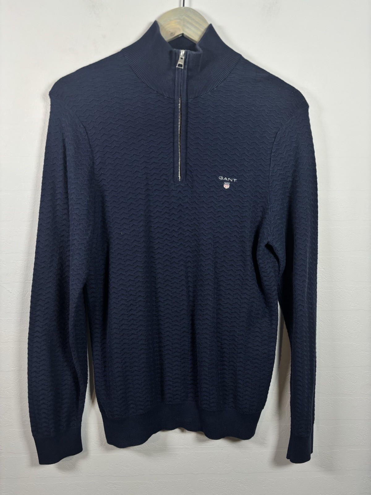 Gant Men's Half-Zip Jumper Navy Blue Cotton Texture Size Small