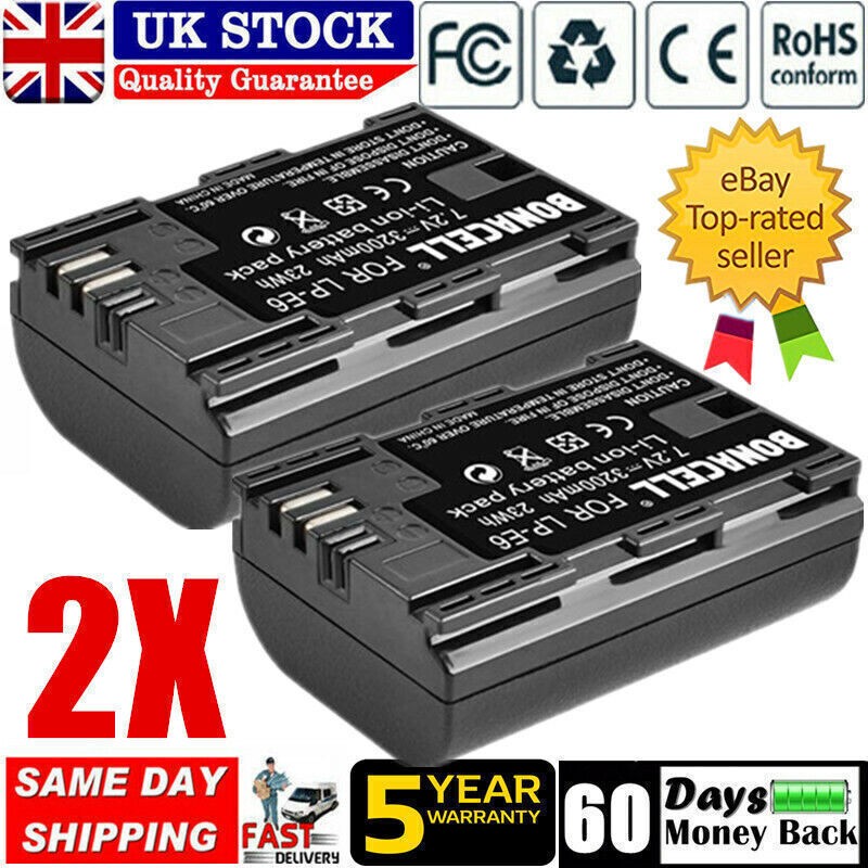2x 3200mAh LP-E6 Battery for Canon EOS Mark II, III,IV 5DS,5DS R6D,60D, 80D,90D