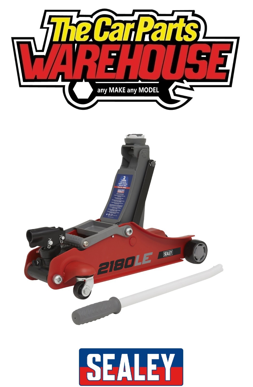 180° Handle Trolley Jack 2 Tonne Low Profile Short Chassis - Red. • Low entry lifting range; minimum saddle height 100mm, maximum saddle height 350mm. • Heavy-duty chassis with strengthening flanges along the top edge for extra torsional rigidity under load.