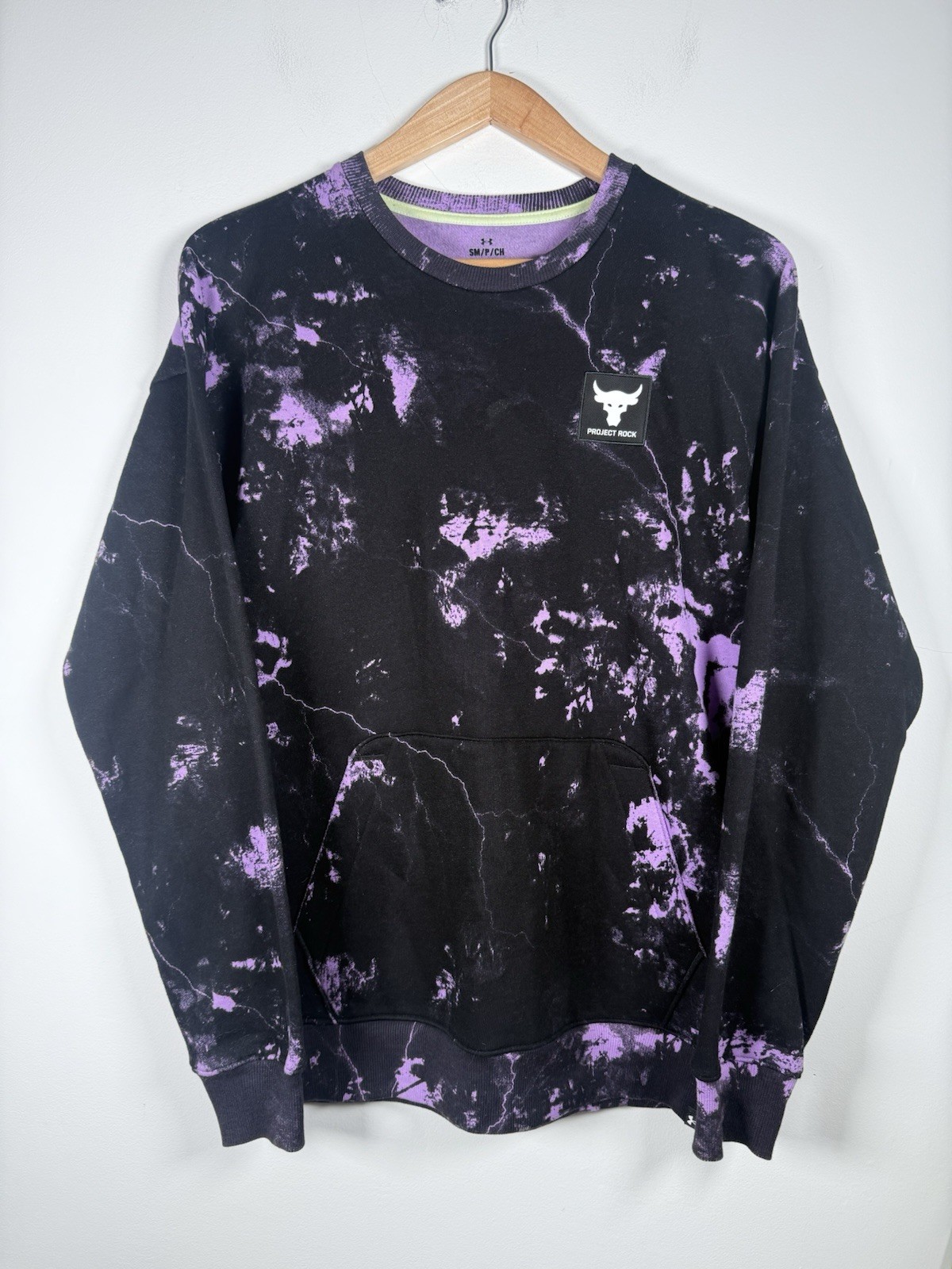 Under Armour x project rock black & purple tie dye crew neck sweatshirt S/M Immaculate condition Soft fleece material inside Rare collab Pit to pit 24” Length 28”