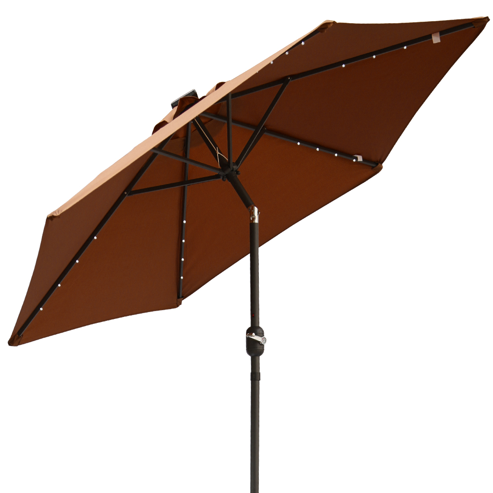2.5/2.7M Solar Patio Parasol LED Lights Sun Shade Round Umbrella with Crank Tilt
