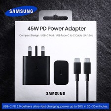 Genuine 45W Super Fast Charger Adapter Plug & Cable For Samsung Galaxy Phones