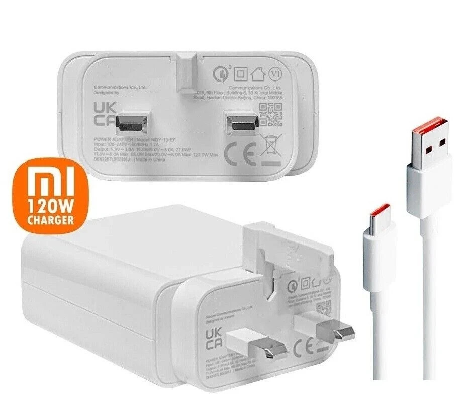 Genuine Xiaomi 120W Ultra Fast Charger UK Plug With USB-C 6A Cable MDY-13-EF