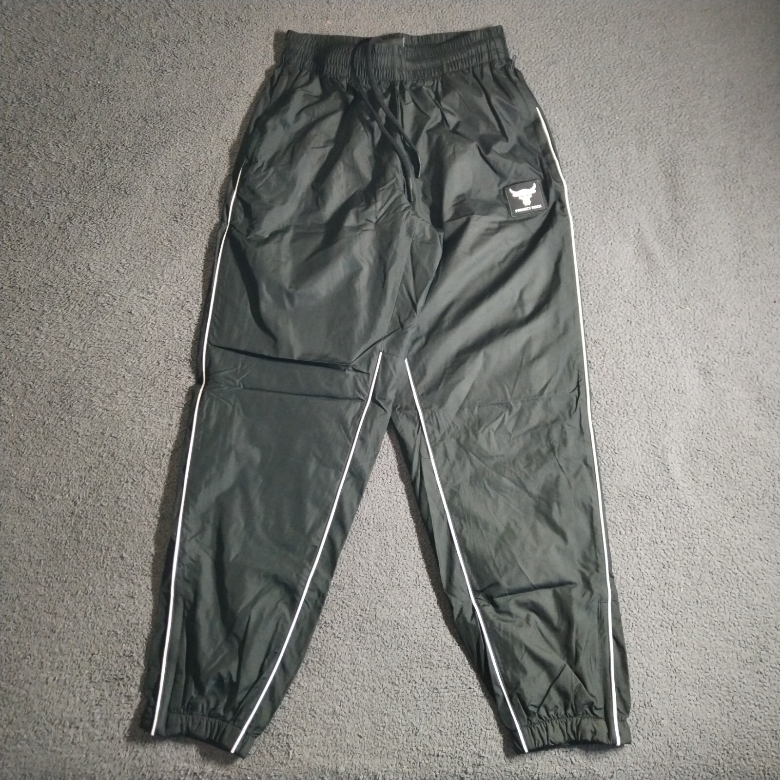 Under Armour Project Rock Joggers Mens Black Mesh Lined Woven Track Pants Bull