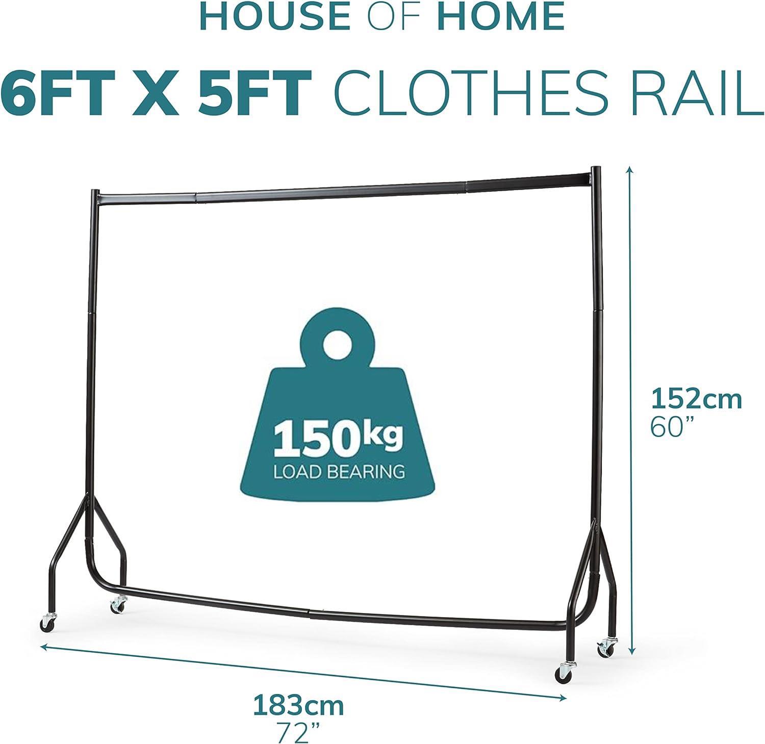 Clothes Rail Super Heavy Duty Rack 4ft 5ft 6ft Length Portable Wheels Storage