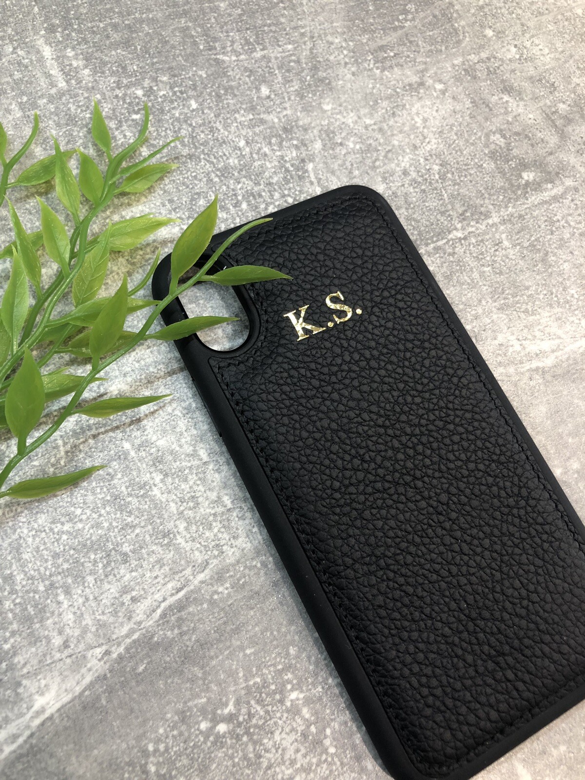 Genuine Black Leather IPhone X/XS Case Personalised Wi Name Initials Customised
