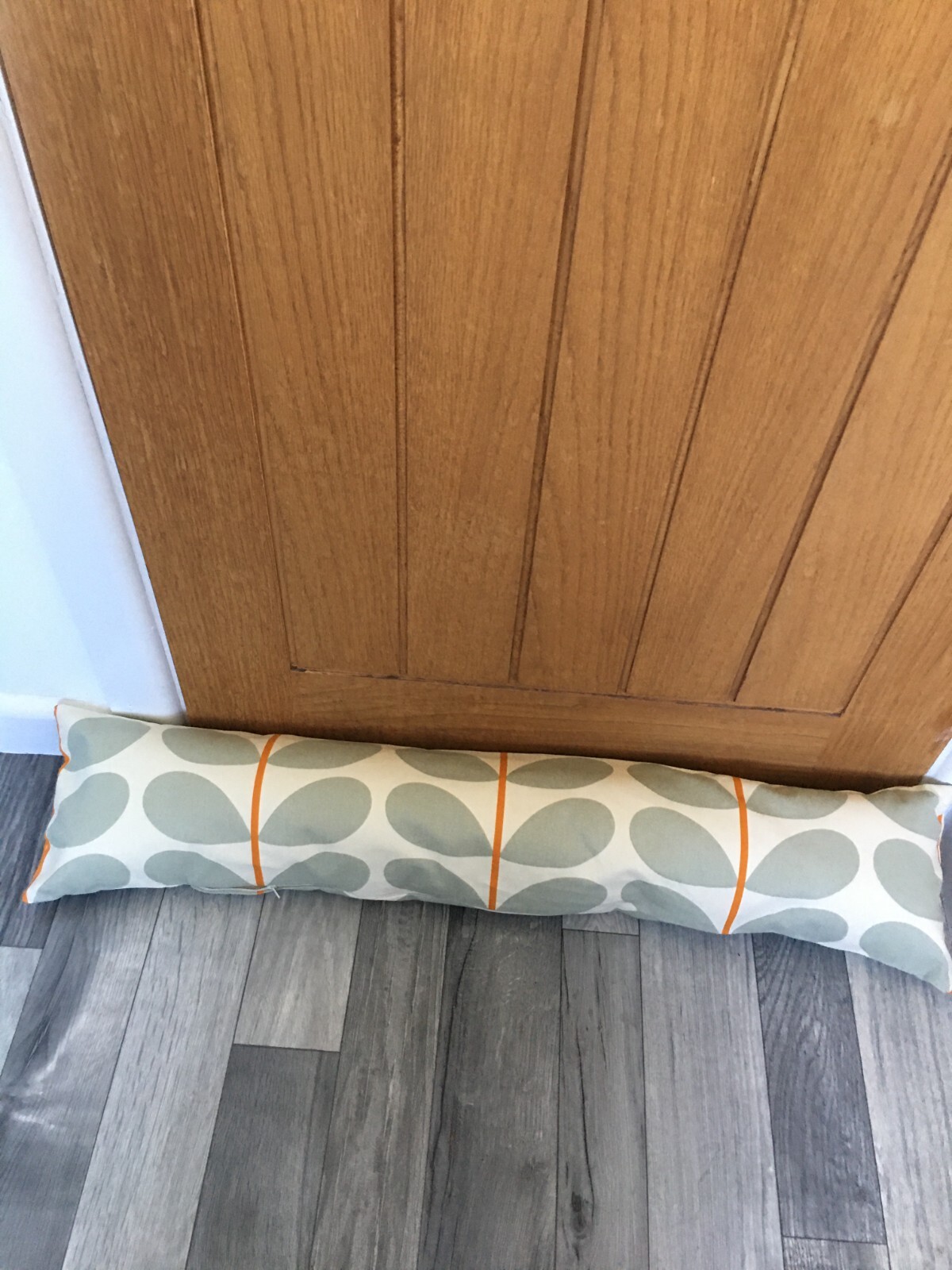 Hand made Orla Kiely Draught excluder Reversible and Removable cover 90cm x 20cm and inner ( which complies with furnishing regulations ) in Warm grey Two colour stem Grey.