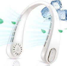 Enjoy a refreshing breeze wherever you go with this wireless portable neck fan in white. Designed with a neck-mounting feature, this round-shaped fan is perfect for indoor and outdoor use. Equipped with a powerful 5W battery, this fan has three different speeds to choose from, ensuring you get the perfect amount of cool air.