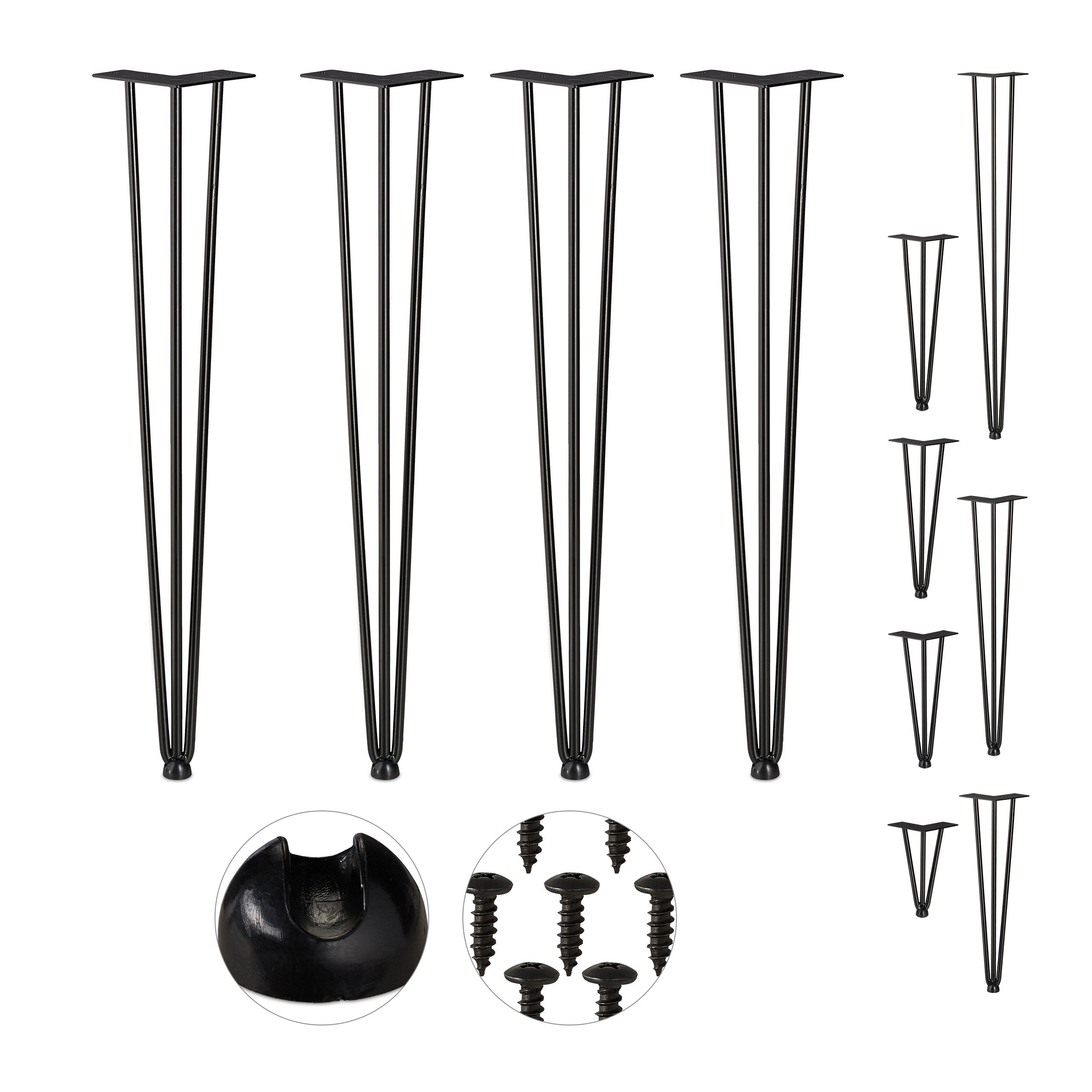Holen Sie sich mit den Tischfüßen im 4er Set den angesagten Mid-Century-Stil ins Haus. Für alle diejenigen, die gern selbst handwerklich tätig werden und Schwung in Ihre Einrichtung bringen wollen, sind die schwarzen Tischkufen ideal.