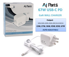 Compatible: 15W/ 27W/ 36W/ 45W/ 65W/ 67W (0-67W) (Auto Adjustable). Pin Type/Size : USB Type-C. Color: Black. Warranty: 1 Year. AJ PARTS UK LTD. Output: 5V/3A, 9V/3A, 12V/3A, 15V/3A, 20V/3.25A, 20.3V/3.3A.