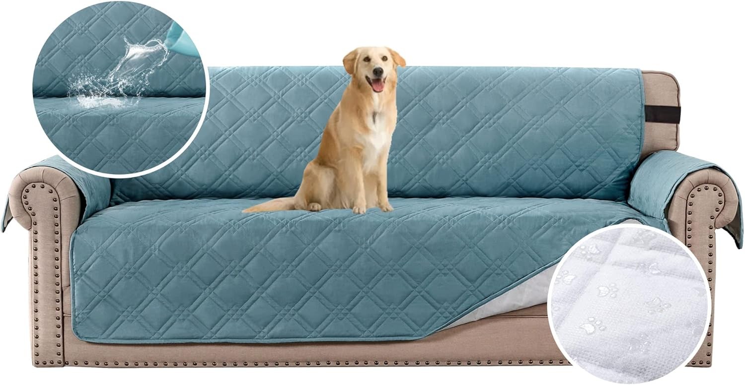 BellaHills 100% Waterproof Oversized Sofa Cover Protector Couch Covers for Dogs/Pets | Sofa Slipcover for 3 Cushion Couch with Non Slip Backing and Adjustable Strap (Oversized Sofa 78", Smoke Blue). Protected By BellaHills 100% Waterproof Furniture Covers, Pamper Yourself And Make Fun With Your Kids and Pets!
