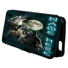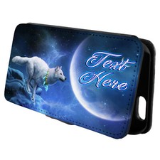 Personalised Wolf iPhone Case Custom Fantasy Moon Flip Phone Cover Wallet KSU14