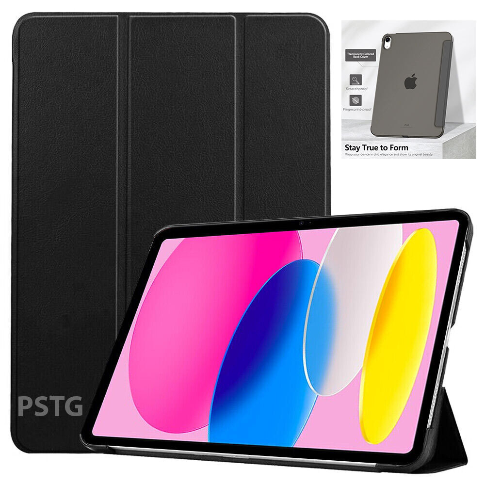 For Apple iPad 10th Generation 10.9" (2022) Premium Magnetic Smart Book Stand Cover Case. Designed for iPad 10th Generation (2022) 10.9" devices. Back case is made of hard Matte Crystal Plastic. Hard Back Case without logo cut out, thelogo can be shown through case.