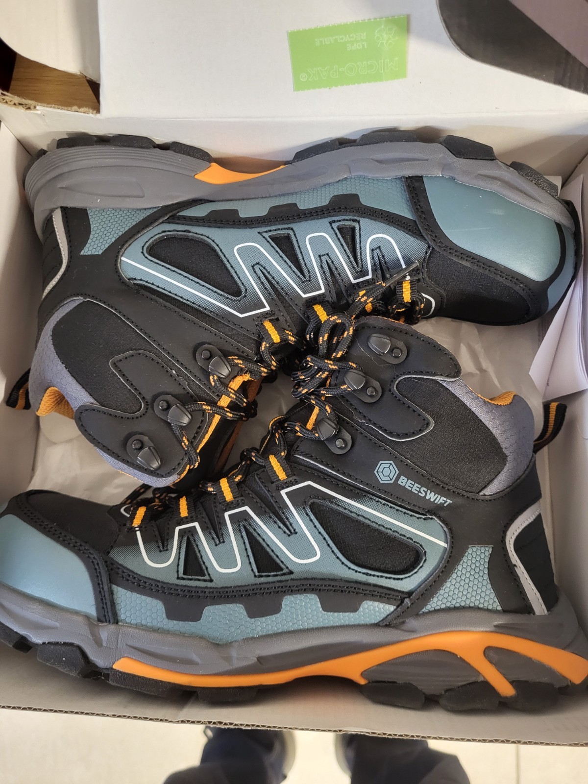 The Beeswift S3 SRC Composite Safety Hiker Boot in Black, Orange & Grey is a durable and reliable work boot designed for safety and protection. With a UK size 7 for men and an EEE width, these boots are comfortable and spacious for all-day wear. Made in China, they come in a stylish black, orange, grey, and blue colour combination, making them both practical and visually appealing for various industrial and safety work environments. Ideal for those in need of personal protective equipment, these boots offer both style and functionality for the modern workplace.