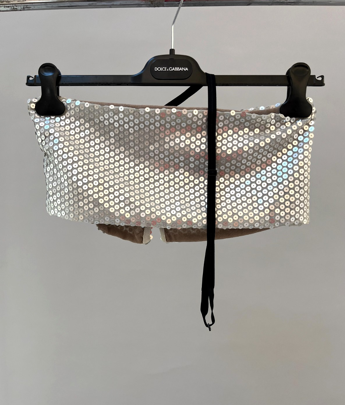 DOLCE & GABBANA Silver Pailiettes Cropped Top Spring/Summer 1999 One Size