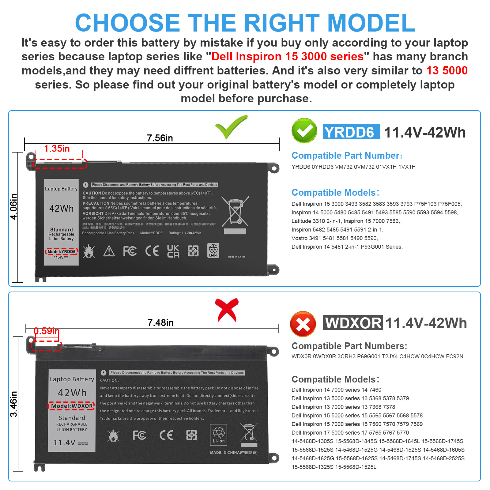 YRDD6 0YRDD6 VM732 0VM732 1VX1H 01VX1H. Capacity: 42Wh. for Dell Inspiron 14 3000 Series for Dell Inspiron 14 ( 3493 ) i3493. for Dell Inspiron 14 5000 Series for Dell Inspiron 14 ( 5480 ) i5480. for Dell Inspiron 14 ( 5481 ) i5481 2-In-1 P93G001.