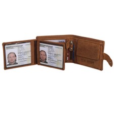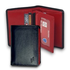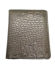 WALLET HAS STRAP WITH BUTTON CLOSURE. 6 POUCHES FOR DEBIT OR CREDIT CARDS. 1 COIN POCKET WITH BUTTON CLOSURE.