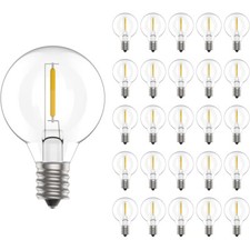 Standard G40 shape with E12 socket, can be easily attached to replace normal E12 bayonet bulbs. The G40 bulbs can be used on led outdoor string lights with e12 base, bumbrella bulbs, market lights, letter bulbs, chandeliers, sconces and other light fixtures with e12 socket.