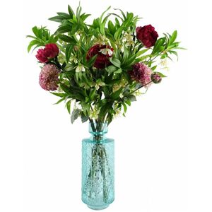 These artificial flower arrangements come with the vases a complete pack of everything you need to create the display shown in our photos. When arranged as we have it shown in our photos this measures 90cm x 50cm x 50cm. Stems are wired and this can be shaped to your requirements This pack contains the following: 1 x LEAF-40588 40cm tall turquoise glass vase 40cm x 16cm x 16cm at widest points. the top rim measures 9. 5cm. 2 x LEAF-40617 75cm Dahlia pompom artificial flowers pink each with one flower and one bud. 3 x LEAF-40664 80cm artificial dark pink peony stem. 6 x LEAF-40699 90cm artificial Hainan Elaeocarpus stem with nine flowers. Flowers and foliage are supplied loose at full length ready for you arrange. You can cut these shorter if wanted for arrangement (very easy- just use wire cutters) or you can just fold the stems at the ends before putting them in the vase. We also supply all these components separately if you want to add to your arrangement. These artificial flower arrangements come with the vases a complete pack of everything you need to create the display shown in our photos. When arranged as we have it shown in our photos this measures 90cm x 50cm x 50cm. Stems are wired and this can be shaped to your requirements. This pack contains the following: 1 x LEAF-40588 40cm tall turquoise glass vase 40cm x 16cm x 16cm at widest points. the top rim measures 9.5cm. 2 x LEAF-40617 75cm Dahlia pompom artificial flowers pink each with one flower and one bud. 3 x LEAF-40664 80cm artificial dark pink peony stem. 6 x LEAF-40699 90cm artificial Hainan Elaeocarpus stem with nine flowers. Flowers and foliage are supplied loose at full length ready for you arrange. You can cut these shorter if wanted for arrangement (very easy- just use wire cutters) or you can just fold the stems at the ends before putting them in the vase