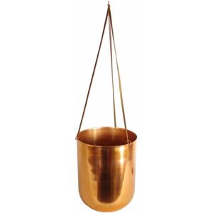 Leaf Copper Hanging Planter 18cm wide x 22cm high (60cm high including straps) with a beautiful shiny polished copper finish. Has thin leather straps with a lightweight 'S' Ring hook to hang at the top. Inner diameter of planter is 17cm so this is quite large and will fit almost all our plants. This looks particularly good with our artificial ferns (available separately). These planters are all hand made in a rustic finish with intentional minor imperfections. As all these planters are hand made there are minor differences from one to another and each one is slightly unique. Intended for indoor use.