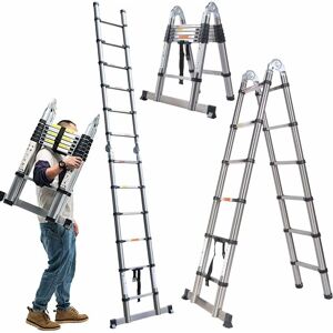 Specifications: Material: Stainless steel Number of Ladder Step: 12 Step Interval: 11.81 inches (30 cm) Max. Load: 150kg/ 330lb A-shape Length: 190cm + 190cm Fully Extended: 3.8 m (12.5FT) Fully retracted height: 87.5 cm (34.45 inches) Weight: 16.8 kg Package List: 1 x 1.9m+1.9m Telescopic A-frame Ladder