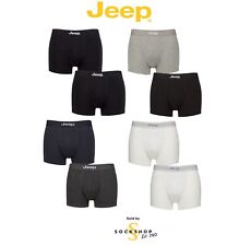 Boxed in a mixed twin pack, these Jeep Plain and Striped Fitted Trunks are light and soft, breathable and easy-to-wear in 95% cotton rich stretch jersey. The stretch jersey gives these trunks a close, yet comfortable fit, with a mid-rise body length. They are close-fronted, with strong double needle flat overlocked seams used throughout. The seams provide chafe-free support around the seam-shaped pouch and on the leg seams, laying flat against the skin to prevent rubbing. These men’s cotton trunks are topped by soft touch elasticated waistbands, with the famous Jeep logo woven into them at the front, in strongly contrasting colour. Both pairs of trunks have shorter, 5cm inseam legs.