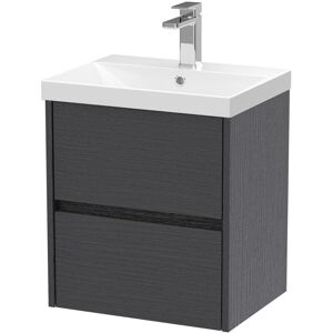 HUDSON REED Nuie Havana Graphite Grey Woodgrain 800mm Wall Hung 2 Drawer Vanity Unit and Thin Edge Ceramic Basin - HAV2206D