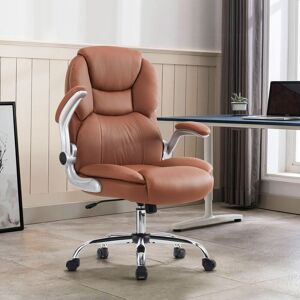 All-day working made comfortable with this home office chair. It's filled with high-density sponge for comfort, wrapped in faux leather upholstery for a sleek look. It's fitted with flip-up armrests so the chair can fit easily under your desk when not being used. Complete with wheels to move around empty, both empty or seated.- Curved back supports your body as you work; - High-density sponge filling for comfort, with sleek faux leather upholstery; - 46-54cm adjustable seat height and adjustable tension: set chair to suit you; - Flip-up armrests to tuck chair under desks easily; - 360° swivel seat and wheels on base: chair moves around easily; - Maximum load 120 kg, assembly required;- Colour: Charcoal Grey; - Material: PU Leather, Sponge, Metal, Nylon; - Overall Dimension: 65W x 67D x 100-110H cm; - Seat Size: 51W x 50D x 47-57H cm; - Back Size: 49W x 62L cm; - Seat Thickness: 12 cm; - Arm Height to Seat: 21.5 cm; - Weight Capacity: 120 kg; - Item Label: 921-851V70CG; Inbox Zero Upholstery Colour: Brown