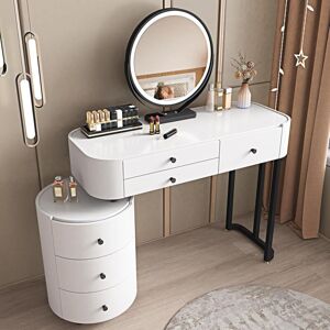 2-IN-1 MAKEUP MIRROR: The dressing table comes with a 54.5x47cm clear rectangular mirror and string lights with 3 adjustable brightness levels, allowing you to make up with plenty of light and ease. The bulbs are CE and RoHS approved A PERFECT STORAGE SOLUTION: The spacious desktop (90x45cm), 3 open shelves and 2 large drawers provide you with ample storage space, making your desktop tidy, cosmetics organised and easy to find, and make-up easier QULITY DRESSING TABLE: Metal supports with painted surface provide a stable and strong structure for the dressing table. E1-grade engineered wood with veneer, scratch-resistant, water-repellent and easy to clean BEAUTIFY YOUR BEDROOM: The simple look and classic white colour make this dressing table easy to fit into any style of bedroom. The golden drawer pulls and legs add an elegant element to the dresser, making it the finishing touch to the bedroom EASY TO ASSEMBLE: We provide detailed instructions and installation accessories, so that