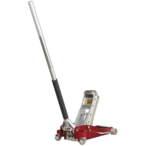 - LOW ENTRY LIFTING RANGE - Minimum saddle height 88mm, maximum saddle height 495mm. - TWIN PISTON ROCKET LIFT - Brings the lifting arm straight into contact with the jacking point with minimal pumps. - PROFILED LIFTING ARM - Allows low clearance height making it suitable for sports and custom cars. - JOINT RELEASE MECHANISIM - Universal joint release mechanism allows safer, more controlled lowering of jack. - STEEL CHASSIS - Heavy-duty steel chassis provides stability and endurance. - 3 YEAR GUARANTEE*.