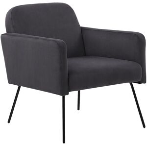 Dark Grey Chair on Slender Legs. Choose the retro design and the ultimate comfort in your living room. Wooden frame upholstered with soft rib structure velvet, together with the thin metal legs create an extravagant feel that will fit well every modern and vintage interior. Deep seating and soft filling guarantee that this stylish piece will bring you or your guests the relaxation you deserve. Details: Product Type: Armchair Style: Modern General Color: Grey, Black Material Type: Fabric Main Material: Velvet Additional Material: Iron Filling Material: Foam Legs material: Metal Material Composition: 100% Polyester Arm Style: Track Armrests: Yes Leg Caps/ Pads: Yes Pattern: Solid Reclining: No Seat Construction: Sinuous Springs Seat Foam Density: 25 kg/m3 Dimensions: Armrests Height: 66 cm Depth: 76 cm Seat Thickness: 12 cm Seat Height: 45 cm Width: 72 cm Height: 77 cm Seating Surface: 56x53 cm Weight: 14 kg Weight Capacity: 130 kg Offer Includes: 1 x Armchair Key Features: Top-Notch