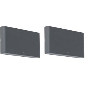 QAZQA Set of 2 Outdoor Wall Lights Dark Grey 17.5 cm Incl. LED - Batt Video A minimalist lamp, but oh so atmospheric. The Batt LED wall light can be used in many different spaces. With an IP rating of 65, this wall light can be used in the bathroom, but also just as easily outside. Top quality outdoor lamp made of high-quality aluminium with a polyester powder coating. With the 'high power' LEDs, this lamp gives off a lot of light with low consumption. The lamp has a depth of 3 cm, a height of 9 cm and a width of 17.5 cm. The lamp has 2 LED light sources with 6 watts, 686 lumens and 2700 Kelvin. The Batt also has an average lifespan of 30,000 hours. The combination of quality, design, efficiency and light output makes this lamp suitable for many applications both indoors and outdoors, so ideal! Now even in a set of 2! Bulb holder: (non replaceable) LED . Max 2 x 13.5 W, 12 V Suitable for: LED Connecting voltage: 220V/230V Protection class: IP65 Non-Dimmable,No, without cord and plug