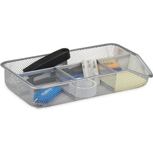 This elegant pen holder is the ideal addition to your desk in the office or home office. The imitation leather cover with light stitching is a real eye-catcher. Pens, sticky notes, mobile phone and other office utensils are neatly stored in the desk organiser. Perfumes, jewellery or cosmetics can also find a suitable place in the 4 compartments of the pen box. Desk Organiser in Detail - Overall dimensions H x W x D: approx. 11 x 29.5 x 11 cm - Outside compartments H x W x D: approx. 10.5 x 7.5 x 8 cm - Centre rear compartment H x W x D: approx. 6.5-10 x 10 x 3.5 cm - Centre front compartment H x W x D: approx. 3.5-6.5 x 10 x 3 cm - Weight: approx. 460 g - Material: PU, MDF, polyester - Various colours Elegant Desk Organiser - Keeps your desk tidy and organised - 4 compartments for office utensils such as pens, notepads etc. - Elegant look made of imitation leather with light-coloured stitching - Ideal for the desk in the home office or in the office - Versatile use for cosmetics,
