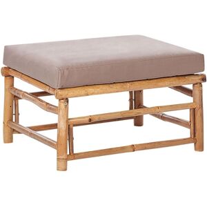 Outdoor Ottoman with Cushion. Create your perfect outdoor oasis with this bamboo ottoman for garden modular sets. Embrace boho vibes with this versatile piece featuring comfy seat cushions with removable covers. Rearrange effortlessly to suit your space. Ideal for gardens and patios, this modular design invites relaxation and style. Upgrade your outdoor living with natural elegance. Details: Product Type: Garden Chair Style: Boho General Color: Beige, Light Wood Shade: Taupe Material Type: Wood Main Material: Bamboo Wood Additional Material: Fabric Material Composition: 100% Polyester Shape: Rectangular Storage: No Dimensions: Depth: 64 cm Width: 55 cm Height: 39 cm Seating Surface: 64x55 cm Weight: 5 kg Weight Capacity: 100 kg Offer Includes: 1 x Seat Cushion, 1 x Ottoman Key Features: Great Relaxation Spot, Low Profile and Deep Seat, Adds Warmth to Outdoor Space, Easy Care and Durable Materials, To Preserve Its Quality, It Should Be Protected from Water and Rain, Removable Covers