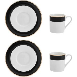 Elevate the style at your next dinner gathering with the Mikasa Luxe Deco Set of 2 Espresso Cups & Saucers. This set includes two 100ml espresso cups and matching saucers, perfect for sharing. The set is inspired by the glamour of the 1920s and features bold monochrome stripes with authentic gold detailing, adding a touch of luxury to your table setting. Made of high-quality fine china, this coffee cup set is perfect for after-dinner pick-me-ups or special breakfasts that are sure to impress your guests with its stylish aesthetic. It's also dishwasher safe, making it easy to clean. The espresso cups measure W5.7cm (8.2cm including handle) x H6.2cm, while the saucers have a diameter of 14cm. For your peace of mind, the Mikasa Luxe Deco China Set of 2 Espresso Cups & Saucers comes with a 2 year manufacturer's guarantee.