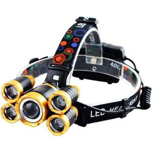 Specially designed for jobs, law enforcement, exploration, security, fishing, search and rescue. Intelligent circuit control, telescopic zoom, 4 mode. Constructed from rugged HAIII military-grade hard-anodized aerodynamic-grade aluminum alloy. Waterproof to IPX-6. The headband can be adjusted according to your head size. Easy to put on or take off. The head can adjust the lighting angle by 100 degrees. The red indicator light on the battery holder plays a good warning role when walking or cycling at night! Uses the latest CREE XM-L T6 LED chip for a maximum output of 8,000-10,000 lumens. Has a maximum beam intensity of 10,000 cd and a throw distance of up to 500-600 meters (ANSI FL1). Our headlights have five models: 1 main light, the brightness is concentrated in a circular spot, you can attract big fish. 2 Vice lights, the spotlight is more dispersed and the most powerful, you can use it for a long time without stimulating glasses, close to the use when you can use it. 3 all lights,