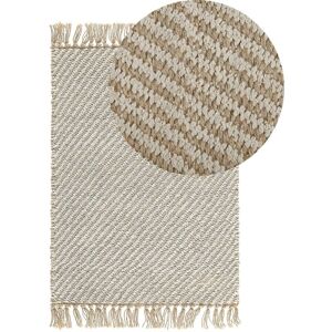 Handwoven Runner Rug with Stripes. Place this runner rug in your hallway, bedroom or other living space, to instantly upgrade the space with a natural elegance. The piece features a timeless, beige colour, which makes it a perfect fit for rustic or boho interiors, while white stripes will draw attention to the accessory. The rug was handwoven out of jute, which makes it durable and long-lasting, especially in traffic-heavy areas. Details: Product Type: Low Pile Style: Boho General Color: Beige Shade: Light Beige Material Type: Fabric Main Material: Jute Material Composition: 100% Jute Shape: Rectangular Anti-Slip Bottom: No GSM: 3500-3600 g/m2 Pattern: Striped Suitable for Underfloor Heating: Yes Weaving: Handwoven Dimensions: Pile Height: 1 cm Width: 80 cm Length: 300 cm Weight: 2 kg Offer Includes: 1 x Rug Key Features: Suitable for Underfloor Heating, Incredibly Soft, Exceptionally Low-Maintenance, Unique Handmade Piece, Natural Material Assembly Information: Does Not Require